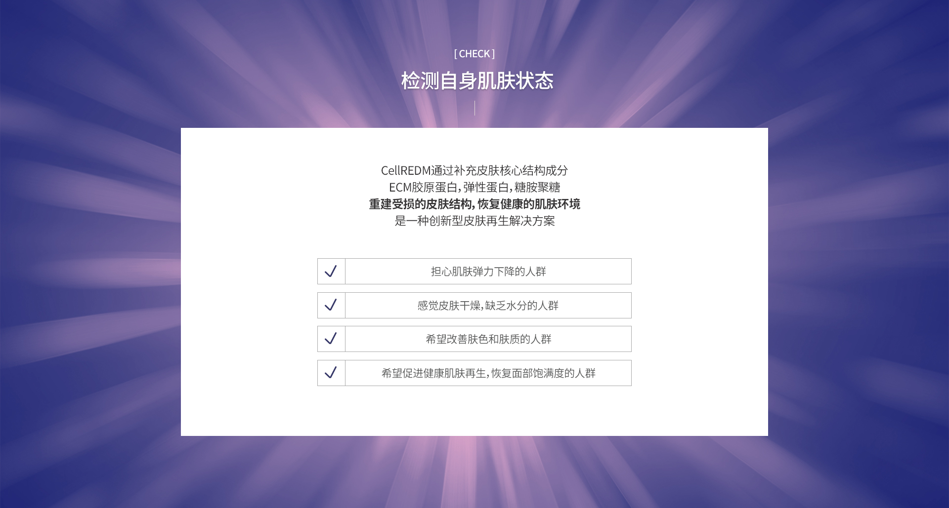 赛帝妍是通过直接补充胶原蛋白,从根本上再生皮肤结构,改善肤质、密度及毛孔的 ECM 水光疗程。